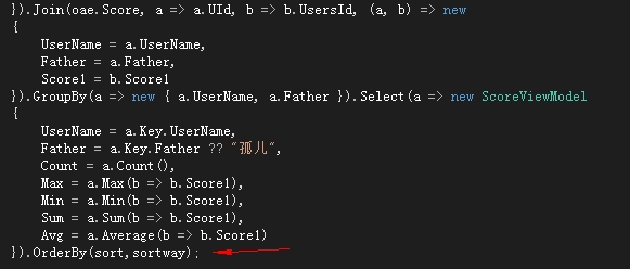 //Invoke(null, new object[] { query, sort })反射对象语句