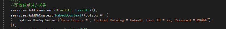 注:usersqlserver是一个扩展方法,需要添加ef core的引用using Microsoft.EntityFrameworkCore;