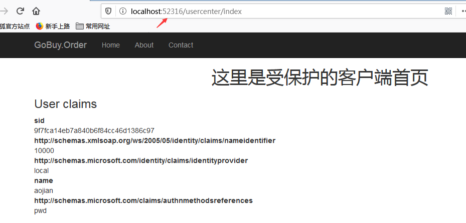 RedirectUris = { "http://localhost:52316/signin-oidc" },//登录成功后返回的客户端地址